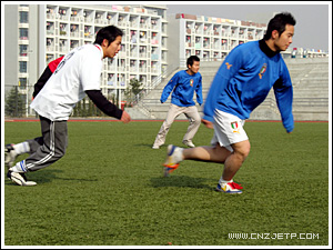 12月13日中午,学院教工足球队与刚刚获得学院首届男子足球赛冠军的工商管理系足球队在体育场进行了一场足球友谊赛。