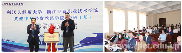 中乌经贸丝路学院成立于2021年1月,旨在通过与乌克兰利沃夫经贸大学校际间的交流合作,搭建“双元师资配备、双向技能培养、五维能力提升”的人才培养体系,有效推进数字技术与运营、大数据与财会、旅游管理大类的标准输出与双向交流。成立以来,学校面向乌方师生以“录播+直播”的形式举办“中文+职业技能”培训,开设“中乌名师大讲堂”,举办系列活动4次,两校参与师生220余人次。