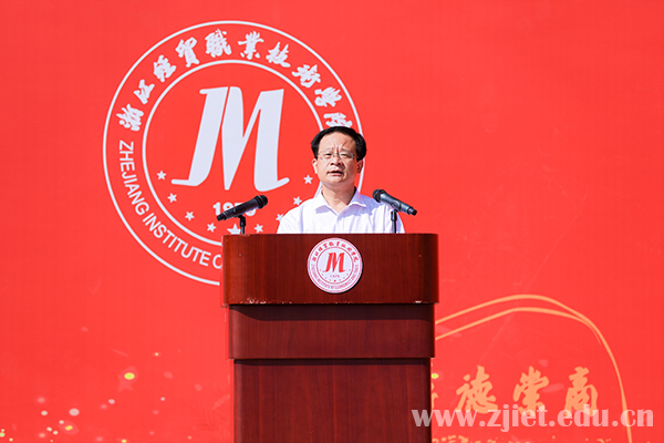 开学典礼在庄严的国歌声中隆重开幕。学校校长陈德泉向新生们的到来表示真挚的欢迎,并以《立技能强国之志让奋斗青春出彩——做一名担当民族复兴大任的新时代青年》为题给全体新生上了一堂“开学第一课”。他希望新“经贸人”志存高远,心怀家国,做一个有理想的新时代青年;珍惜时光,勤奋学习,做一个有本领的新时代青年;脚踏实地,勇于实践,做一个有作为的新时代青年;陶冶情操,锤炼品德,做一个有涵养的新时代青年。他寄语新生切实扛起新时代职教人的使命担当,以青春之我、青春之奋斗,主动融入学校发展,融入国家发展,为中华民族伟大复兴贡献青春力量!