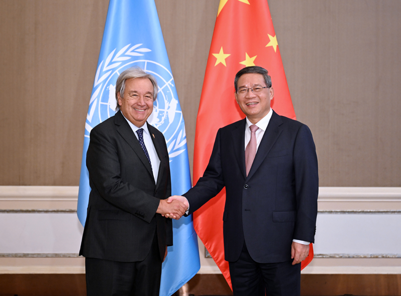 当地时间9月7日下午,国务院总理李强在雅加达出席东亚合作领导人系列会议期间会见联合国秘书长古特雷斯。新华社记者 张领 摄