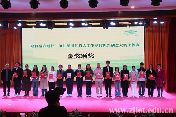 11月22日,“建行裕农通杯”第七届浙江省大学生乡村振兴创意大赛闭幕式在浙江同济科技职业学院举行。学校荣获金奖2项、银奖3项、铜奖2项,实现本项赛事获奖数量又一新的突破。