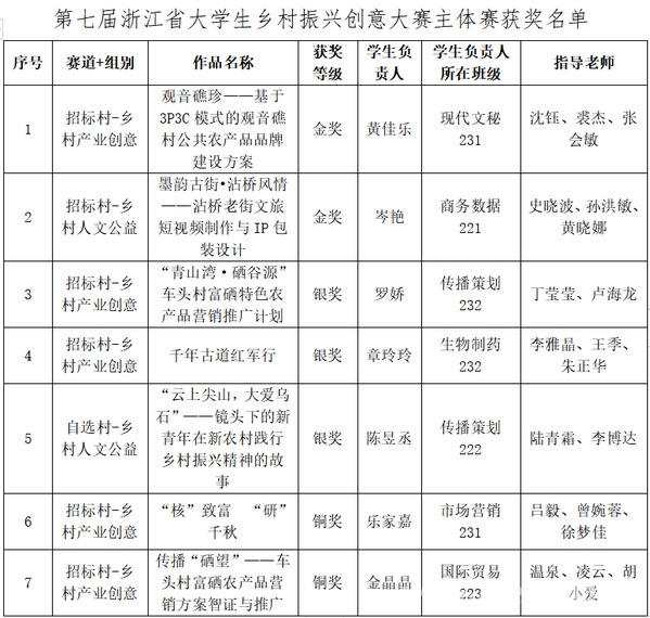 2金3银2铜,学校在第七届浙江省大学生乡村振兴创意大赛再创佳绩
